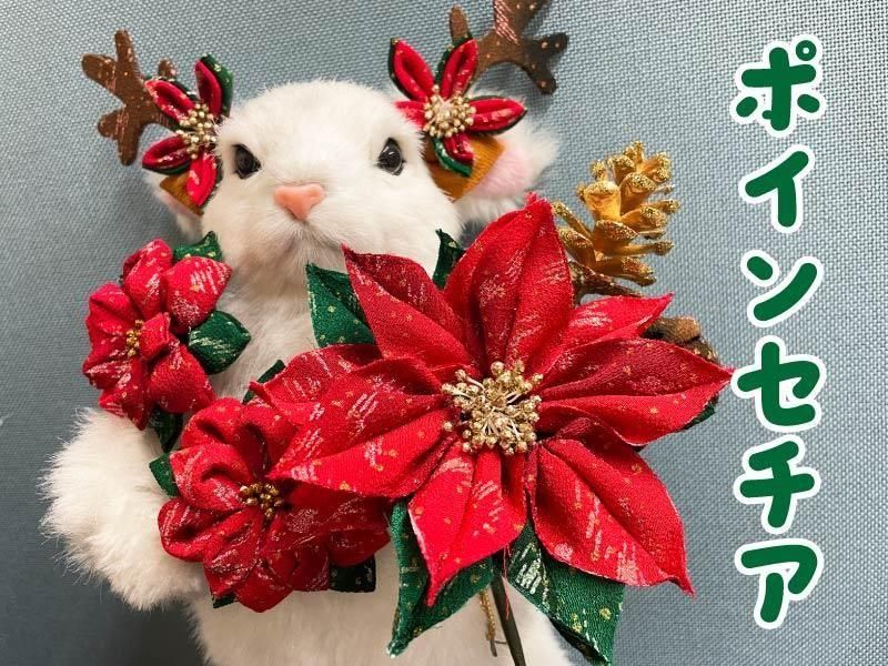 クリスマスのつまみ細工で作ったポインセチアにぴったり♪