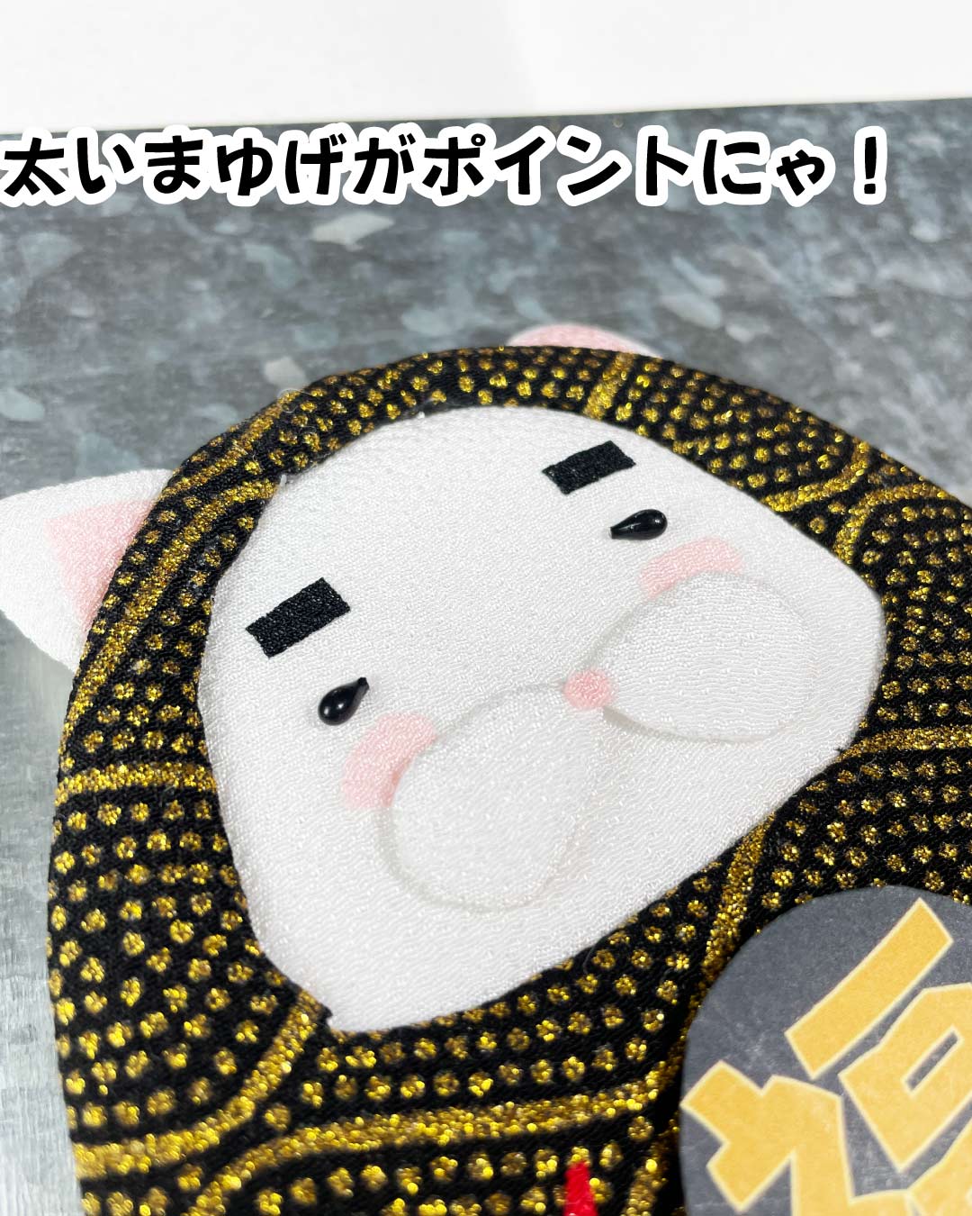 目は、黒の無地のちりめん生地をほぐして、でんぷん糊で丸めたものを使用しています。