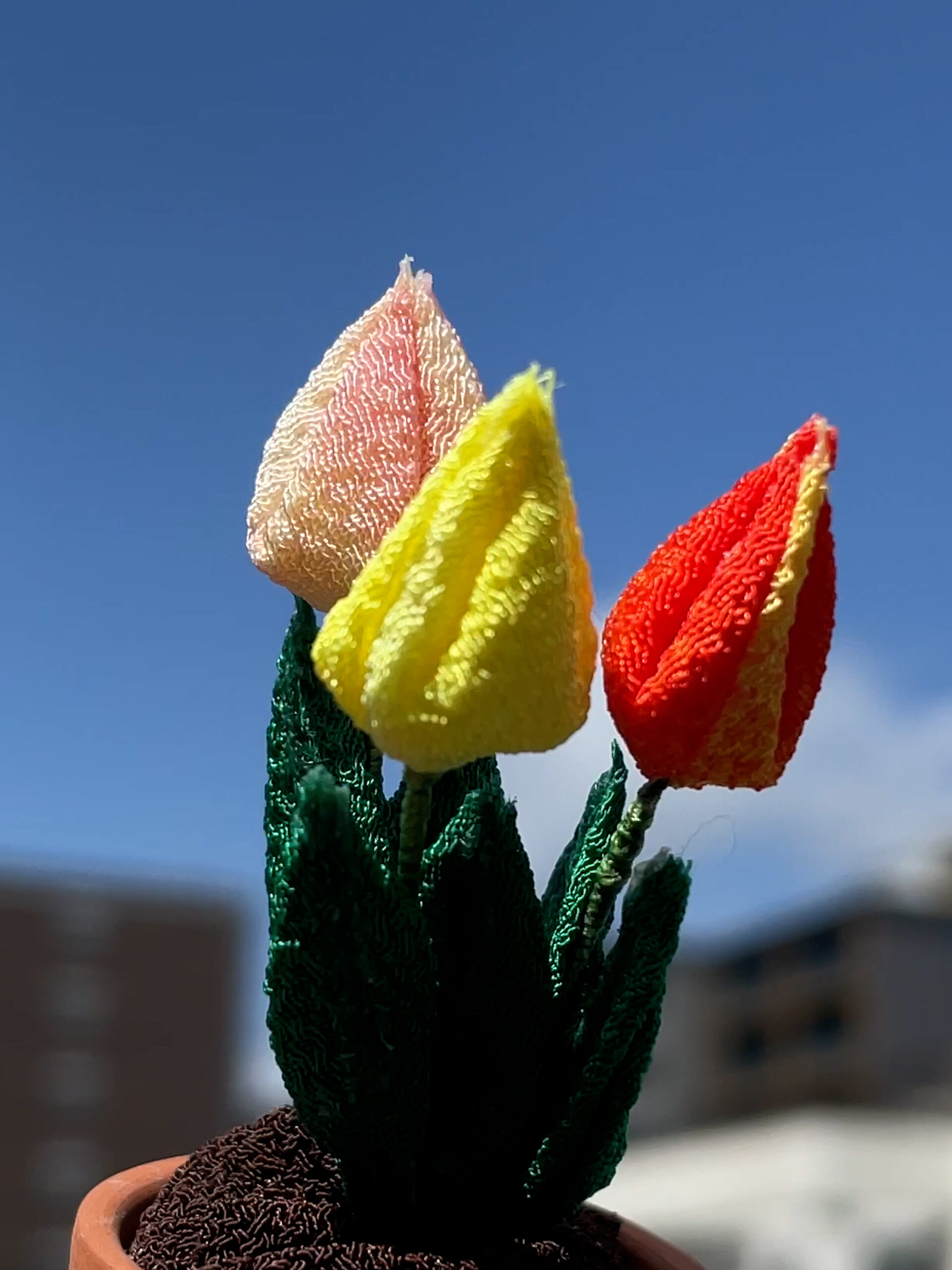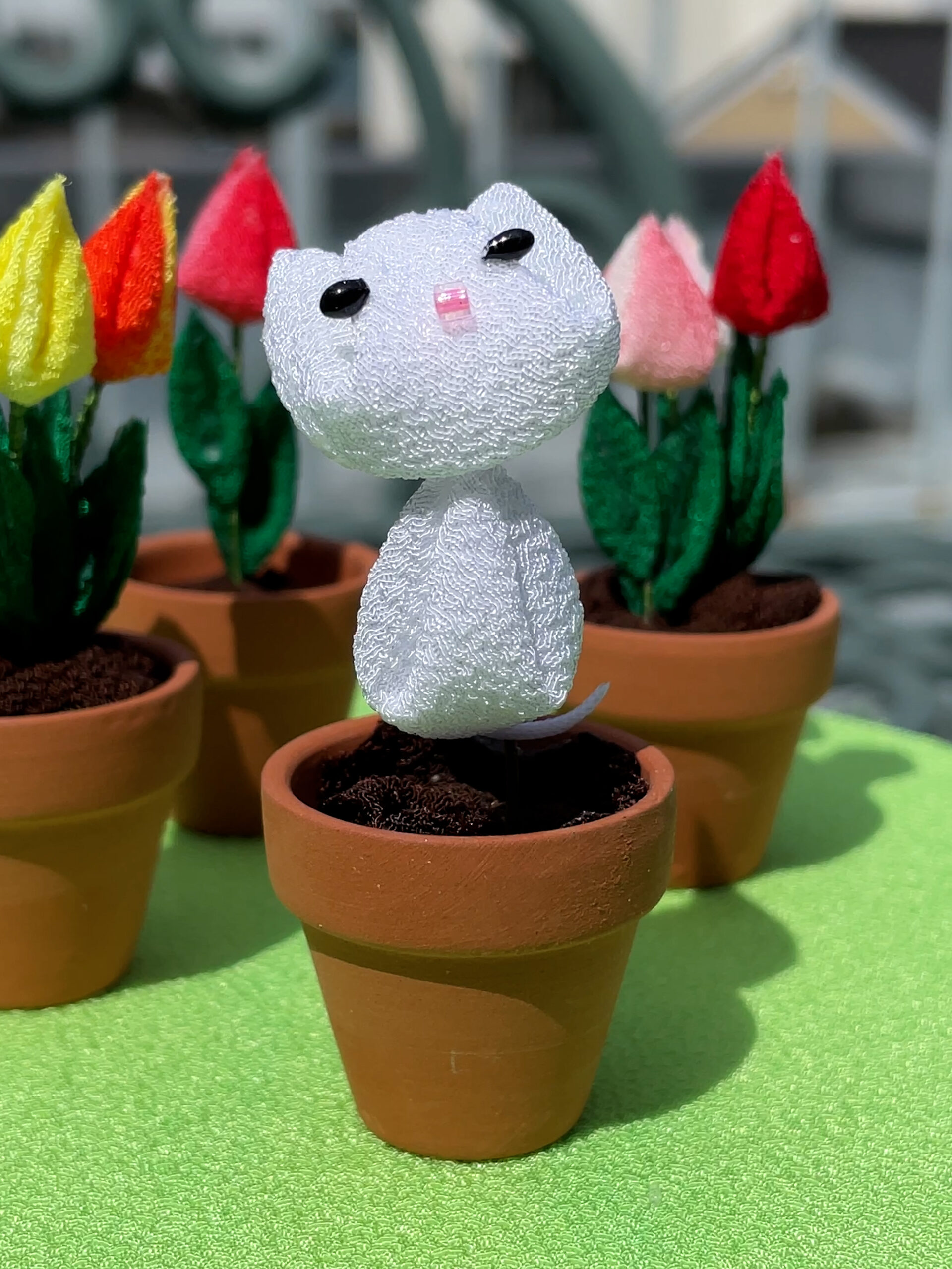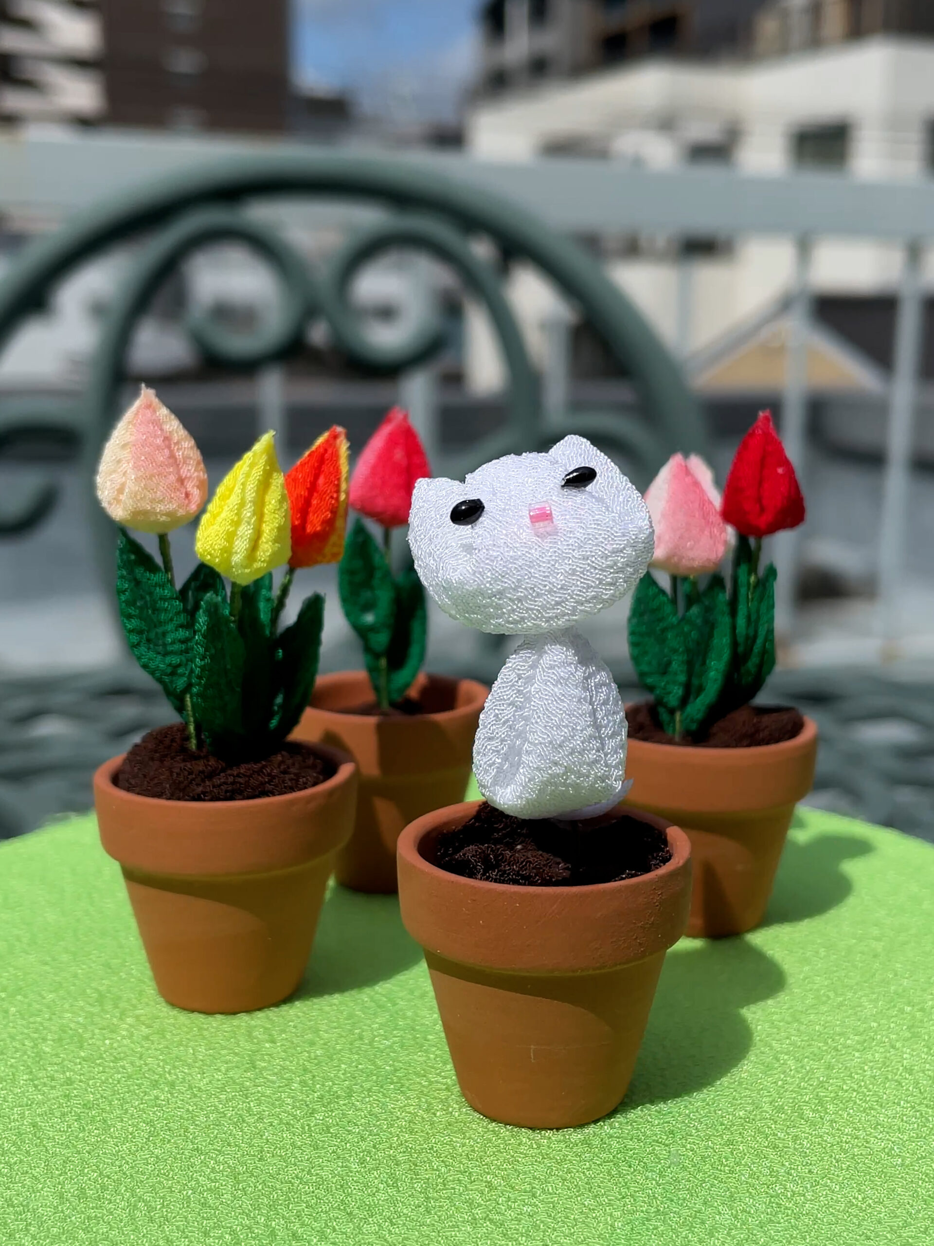 チューリップの鉢植えから「ナノちゃん」登場!ハギレから生まれた小さな癒やし